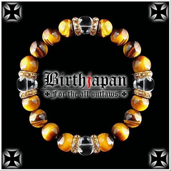 - 10mm/ロンデル×虎目石タイガーアイ/水晶数珠ブレスレットヤクザ