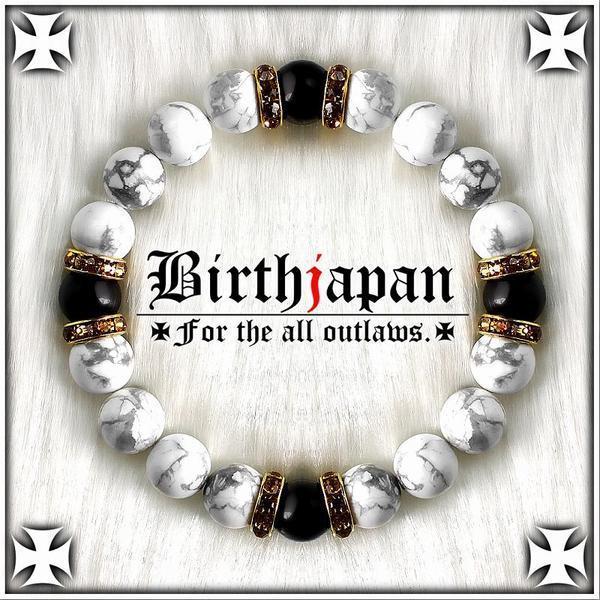 - 10mm/ロンデル×ハウライト/オニキス数珠ブレスレット/ヤクザ