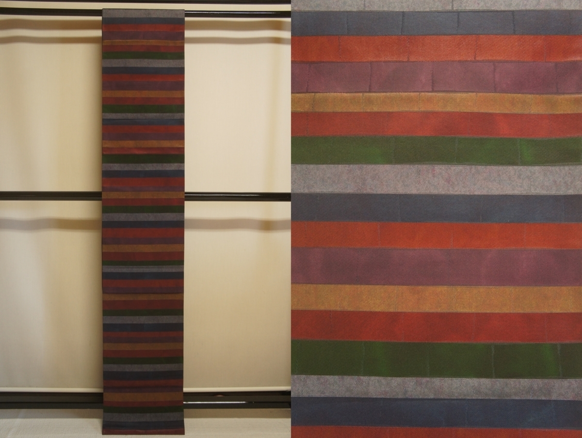 - 特選紫紘手織り漆引箔石垣模様未着用袋帯[O13866]
