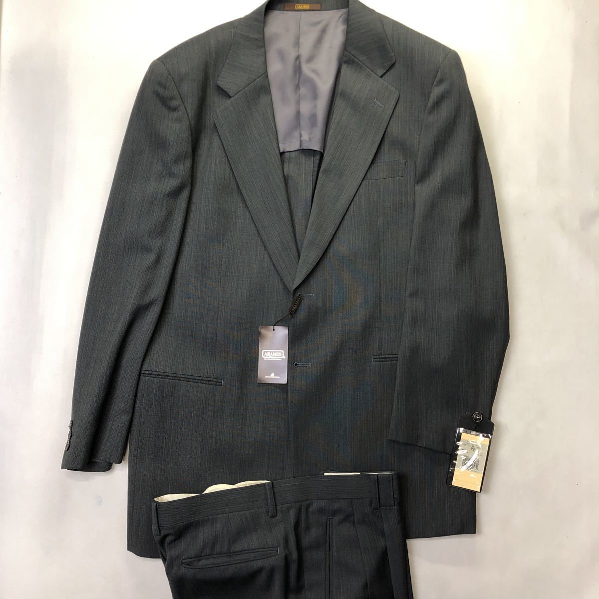 - 新品タグ付き激安 88,000円高級ブランドARAMIS 2つボタンスーツセットアップ サイズR52 日本製 グレー系チェーン織柄ストライプ AB7