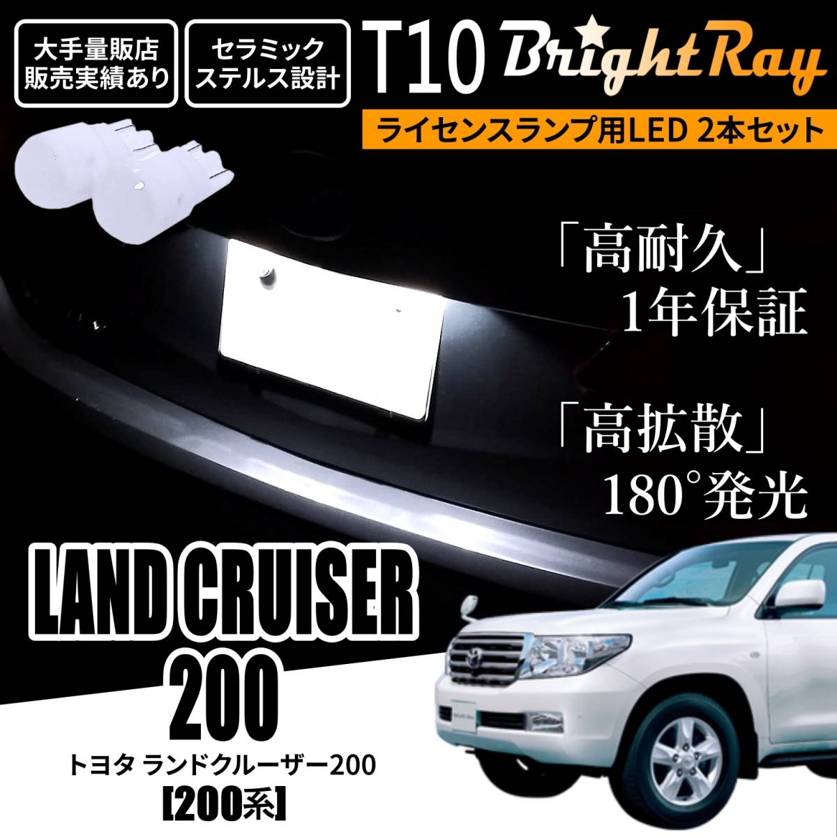 - 送料無料 トヨタ ランドクルーザー200 200系 BrightRay T10 LED バルブ 1年保証 ナンバー灯 ライセンスランプ ウェッジ球 ホワイト