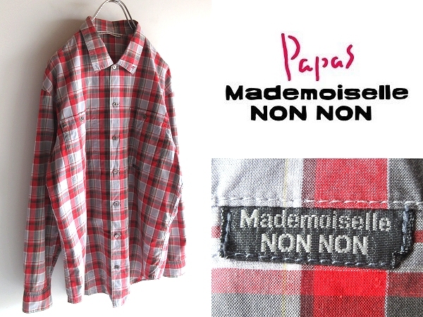 > ネコポス対応 Mademoiselle NON NON マドモアゼルノンノン イニシャル刺繍 ミニロゴピスネーム チェックシャツ ブラウス レッド グレー