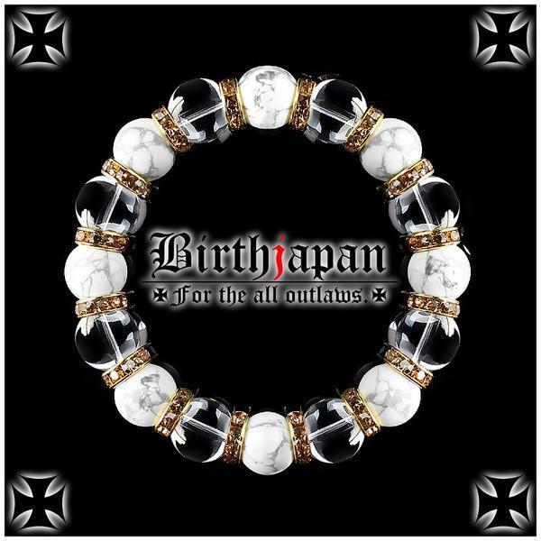 - 12mm/ロンデル×水晶/ハウライト数珠ブレスレット/オラオラ系