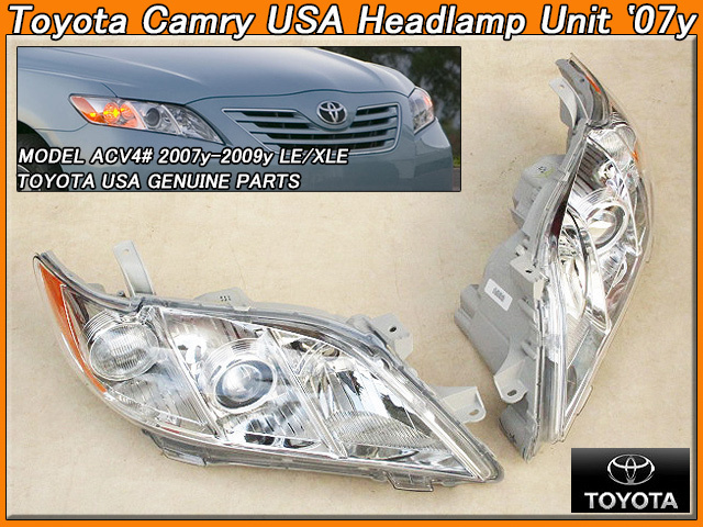 - カムリACV40前期/TOYOTA/トヨタCAMRYセダン純正USヘッドライト左右(07-09年-LE.XLE)/USDM北米仕様USA燈色サイドマーカー付フロントランプ