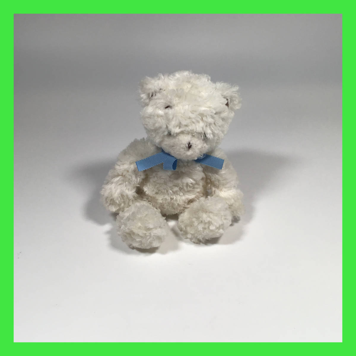 - N-099☆ FS 白いクマのぬいぐるみ 水色のリボン 洗濯可能 08S104 シロクマ 白熊 動物 くま クマ