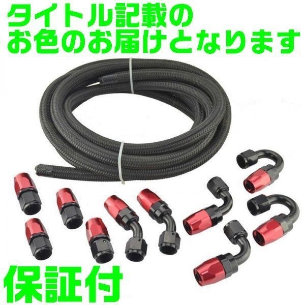 > 【AN4】【黒&赤】ナイロン メッシュホース オイルクーラー セット 5m ホースエンド セット 接手ホース フィッティング アダプター