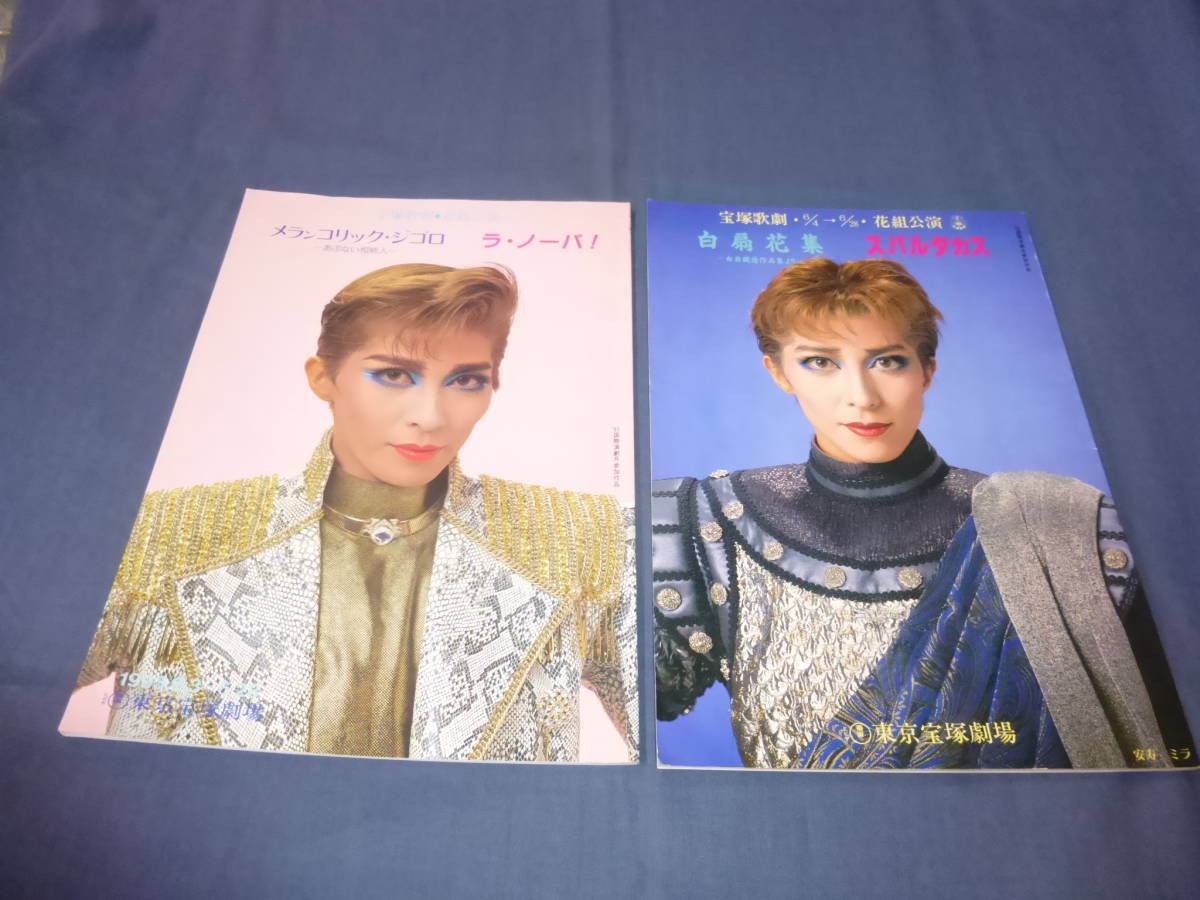 - (25)宝塚・花組公演 安寿ミラ主演パンフ2冊「白扇花集・スパルタカス・メランコリックジゴロ・ラノーバ」真矢みき、真琴つばさ、愛華みれ