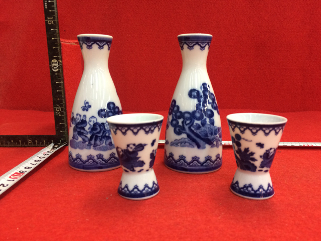 - 昭和レトロ_京焼き/林山作/唐子画/徳利 猪口/2セット _0121
