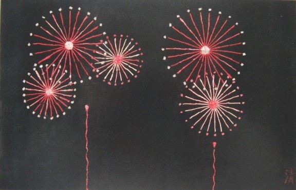 - 山下清、【花火】、希少な額装用画集より、美品、日本人画家、新品額装付、送料無料