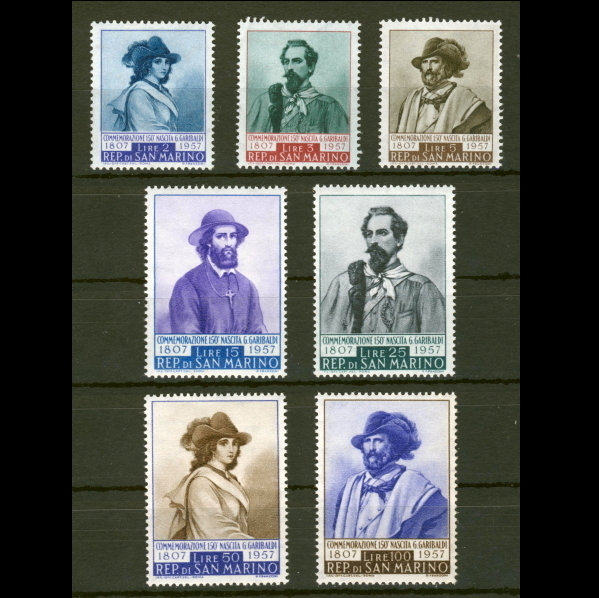 - ■サンマリノ切手 1957年 ガリバルディ / イタリア統一 7種完