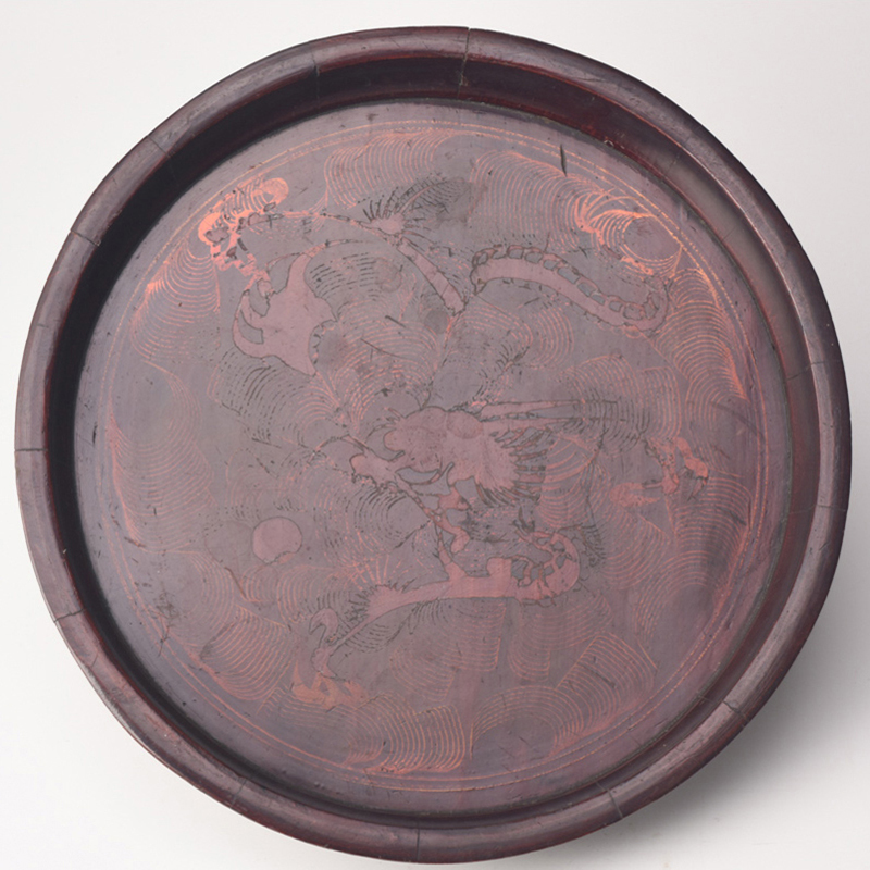 - 【中国美術】 ★ 民俗 大漆描金龍紋木盆 ★ 清朝期 當萬茂 在銘 雅玩雑項 検清代清時代江戸時代蒔絵盆花梨紫檀唐木古美術古玩骨董唐物