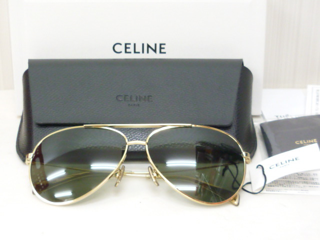 > 超美品 CELINE セリーヌ サングラス アビエーター CL400620 メタルフレーム 01 ミネラルグラスレンズ ゴールド/グリーン ティアドロップ a