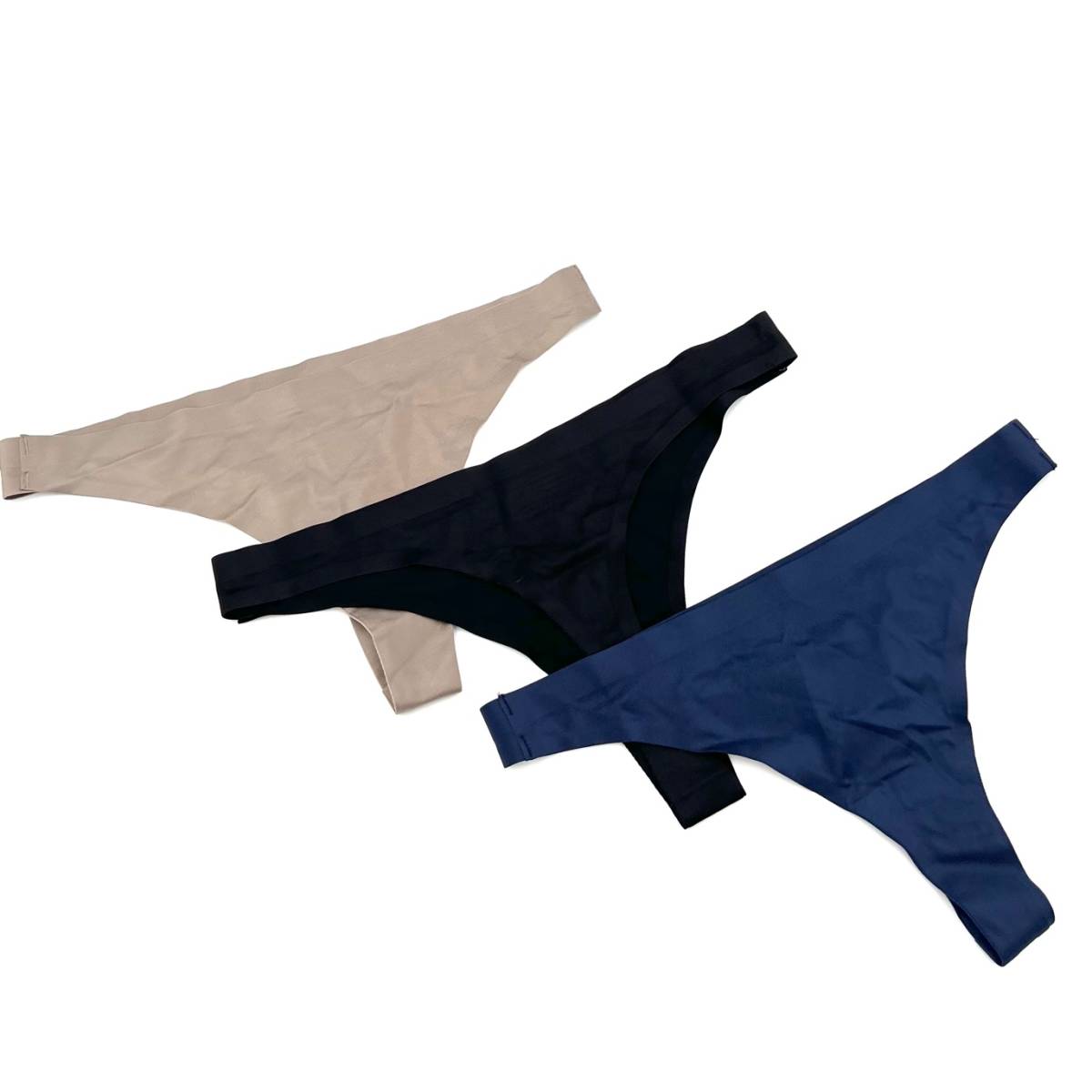 > [ププレホロムア] ブラジリアンカット シームレス 3枚 セット インナー パンツ 無地 光沢 ツルツル tバック 女性 (ブラック系, L)