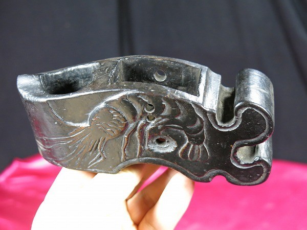 - B 海老龍文様墨壺 江戸時代中期 木彫 大工道具 木工 建築道具 設計 書鎮 文鎮 墨壺