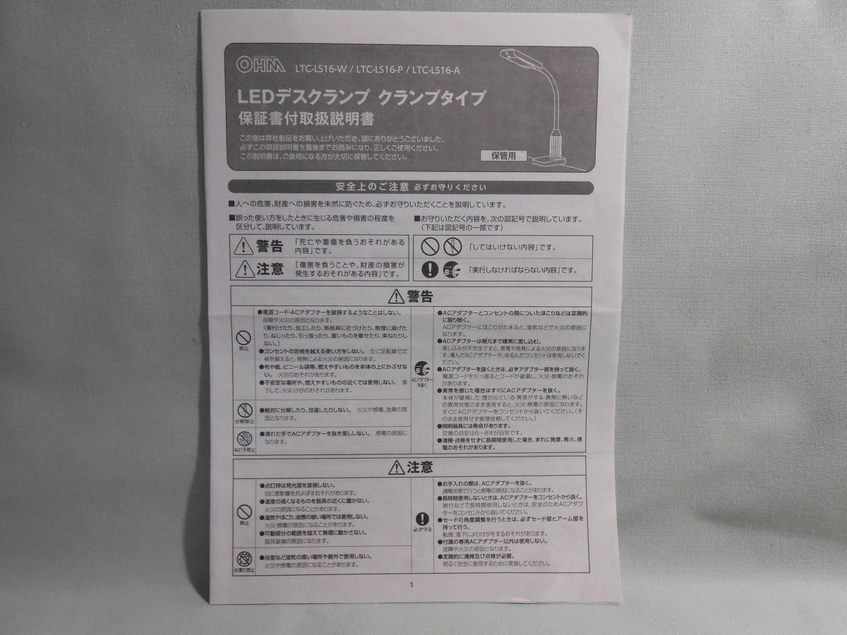 - M-486 ☆ オーム電機 取扱説明書 ☆ LTC-LS16 中古【送料¥210~】