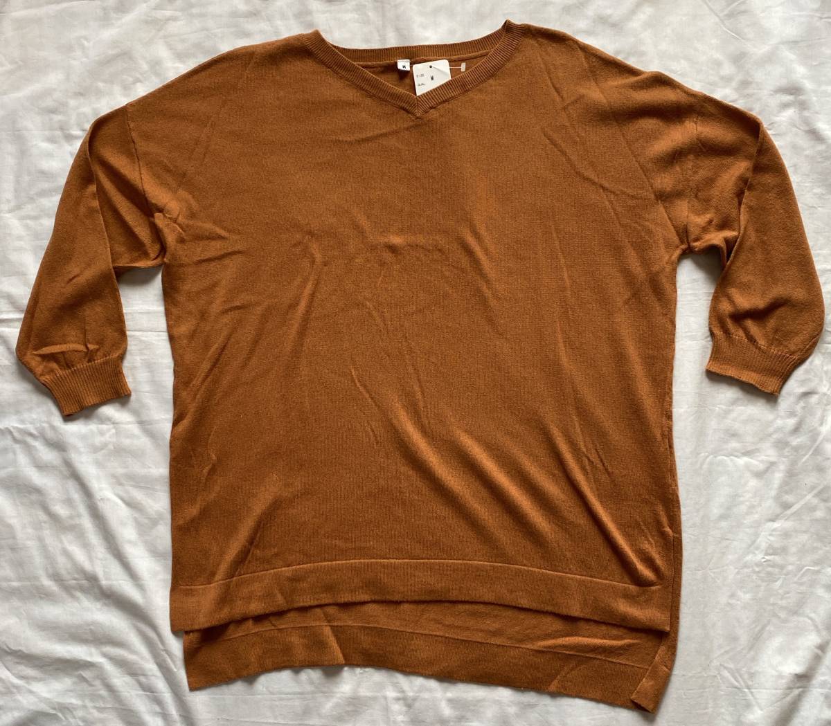 - Vネック七分袖綿セーター Vネックシャツ Mサイズ オレンジ茶系色 通販商品 春秋冬可能 3190税込み品♪♪未使用品