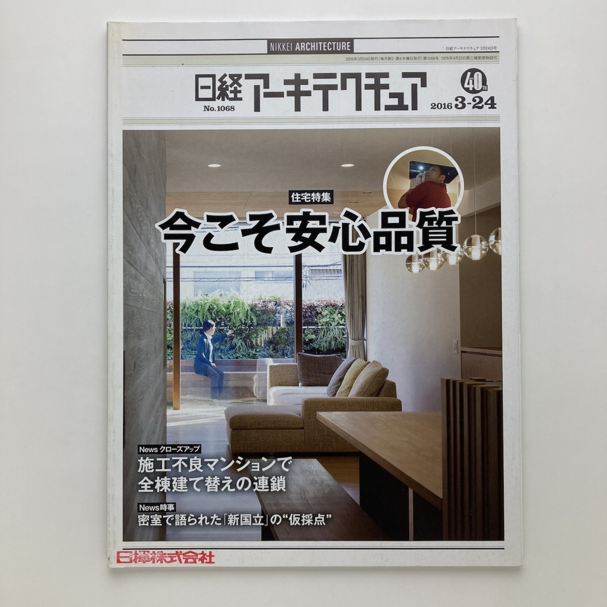 - 日経アーキテクチュア 特集 今こそ安心品質 日経BP社 2016.3ー24 <ゆうメール>