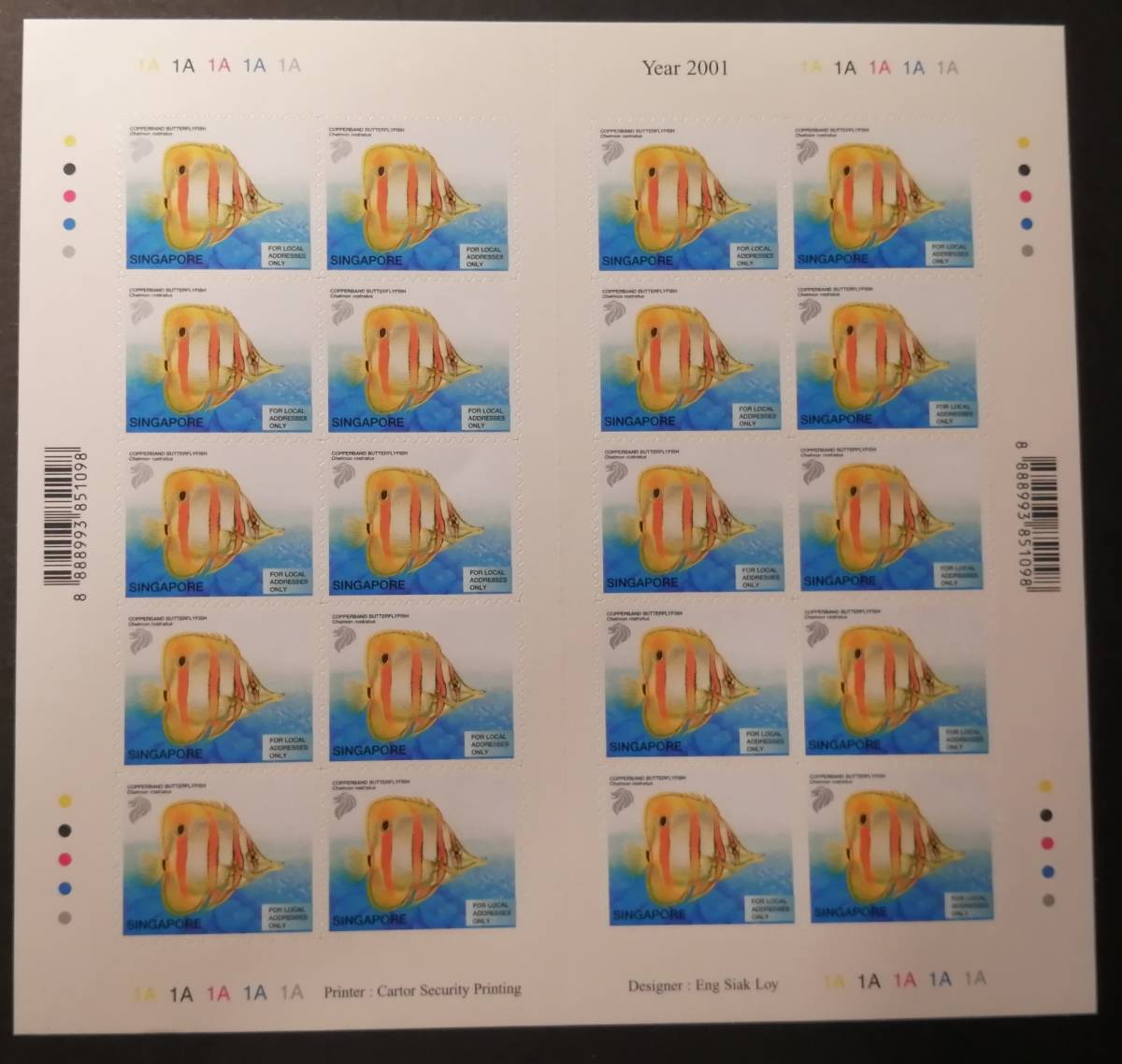 - シンガポール 魚(1種(20枚)シート,シール式) MNH