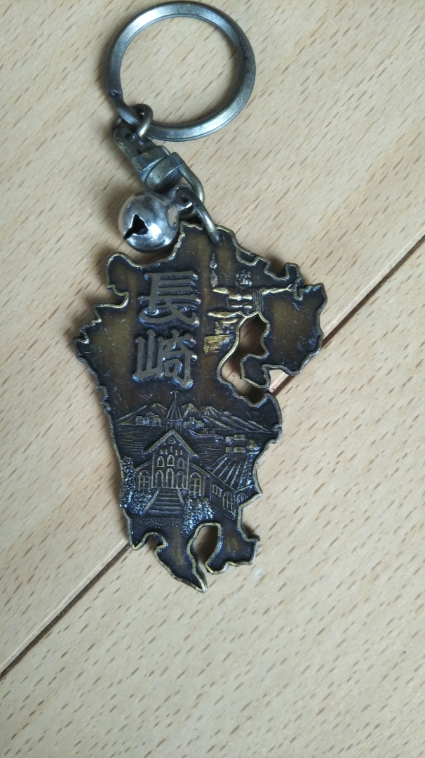 - 即決 九州形 長崎 レトロ キーホルダー ご当地 すず付き お土産 金属製
