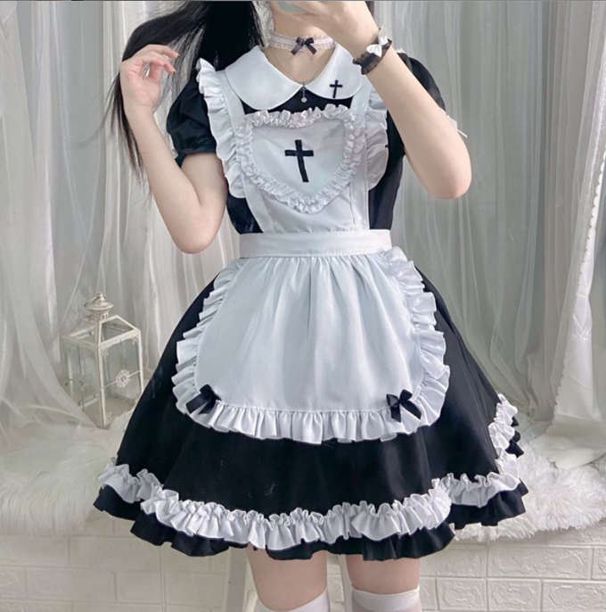 - 【M-4】ワンピース メイド 服 ロリータ 学園祭 ハロウィン お祭り イベント パニエ コスプレ衣装 3色可選