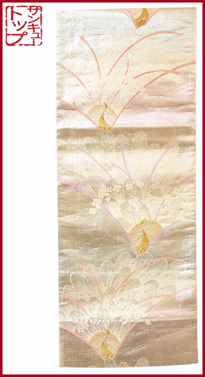 - 【店頭価格6000円の品 在庫処分 大幅値下げ】☆質:39トップ 着物館 帯 874 正絹 袋帯 六通 孔雀文様 中古 お慶びの席などに