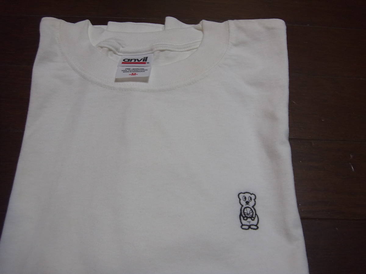 > ★バスケ クマ 熊 ベアー バスケのクマさん ブサカワ1ポイント刺繍 ロングスリーブTシャツ 新品未使用 白 ホワイト US Mサイズ★