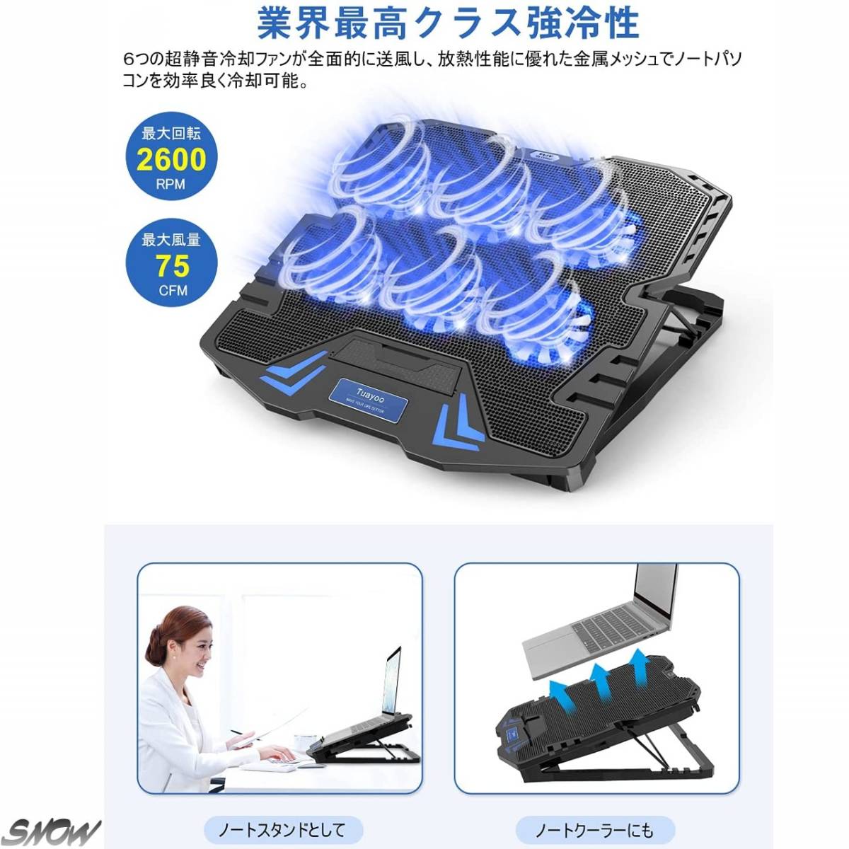 > Macbook Pro ノート PC タブレット PS4 PS5 2USBポート付 強冷 冷却ファン 冷却台 PCクーラー 5段階角度調整可能 風量調節可 熱暴走対策