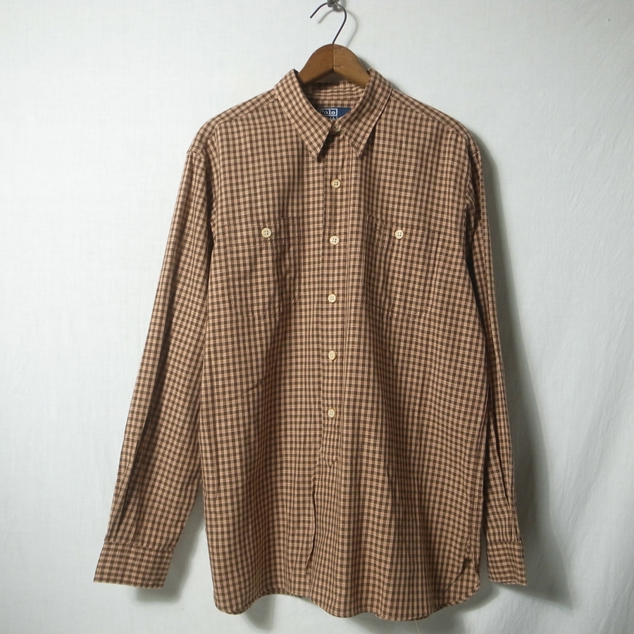 - 30sスタイル ◆ ポロ ラルフローレン チンスト 長袖 シャツ L / POLO Ralph Lauren 90s 80s ヴィンテージ マチ