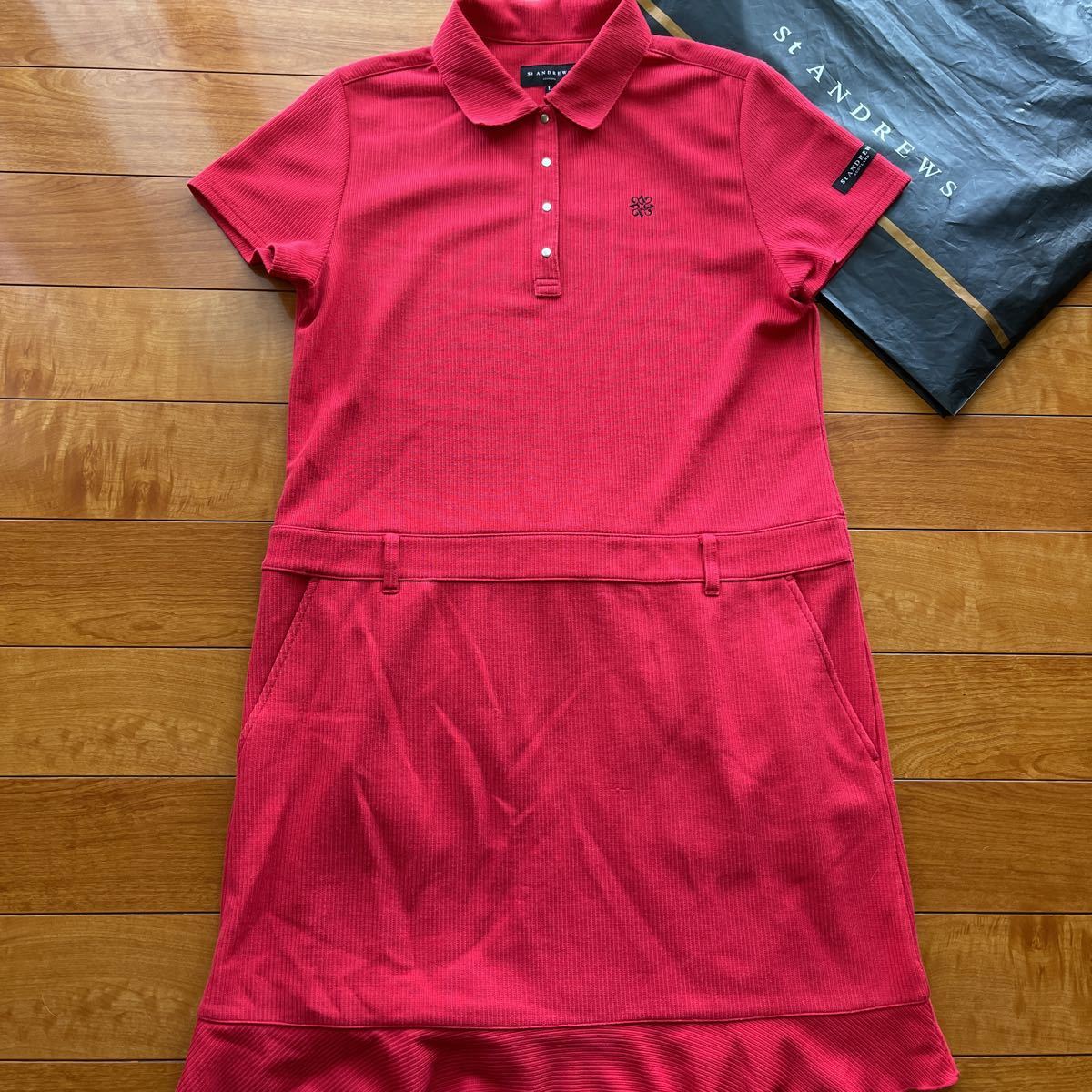 - 送料無料St ANDREWSセントアンドリュースWOMENSジャカードポロワンピース吸水速乾DRY通気性ventilation柔らか伸縮Red(大特価)2try中古品