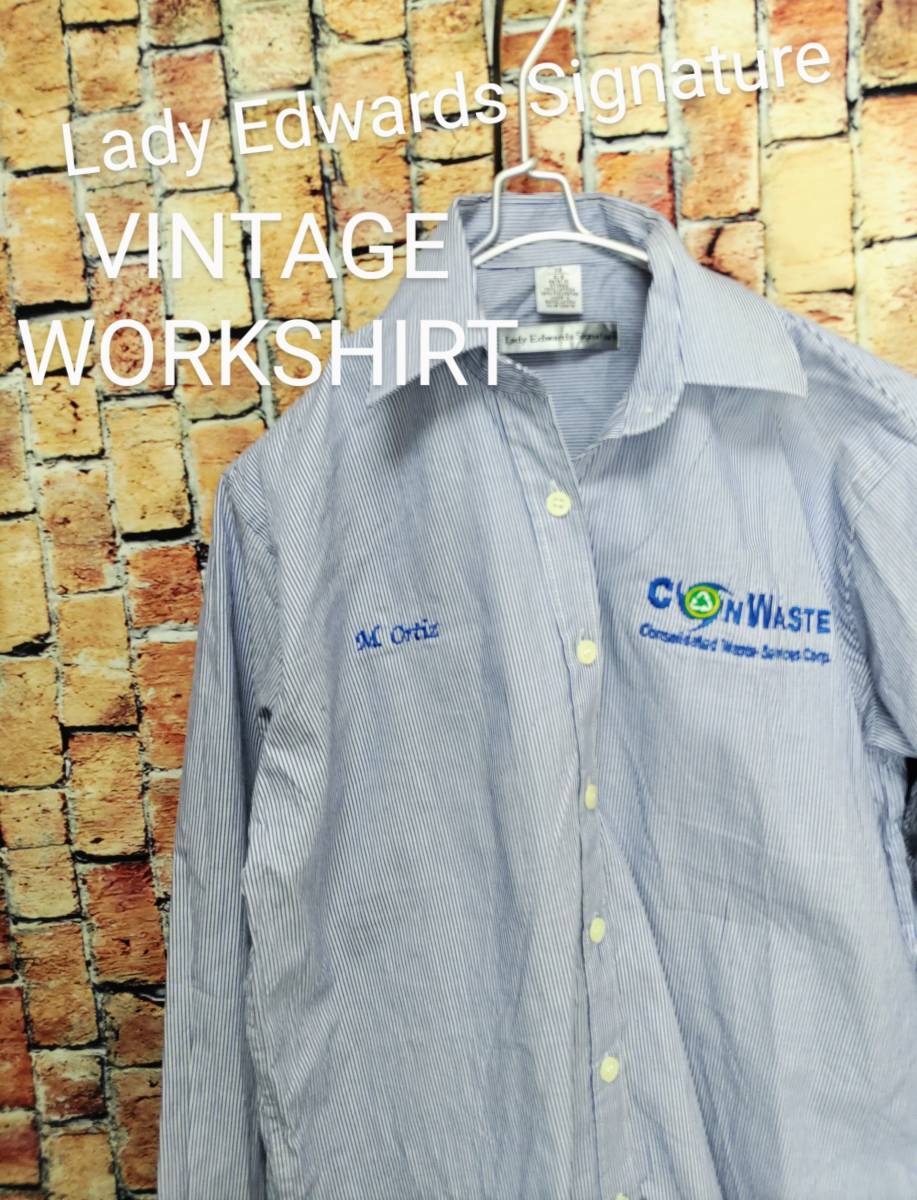 > ★送料無料★ US古着 Lady Edwards Signature ワークシャツ ヒッコリーストライプ 長袖 ゴミ回収業者 M位