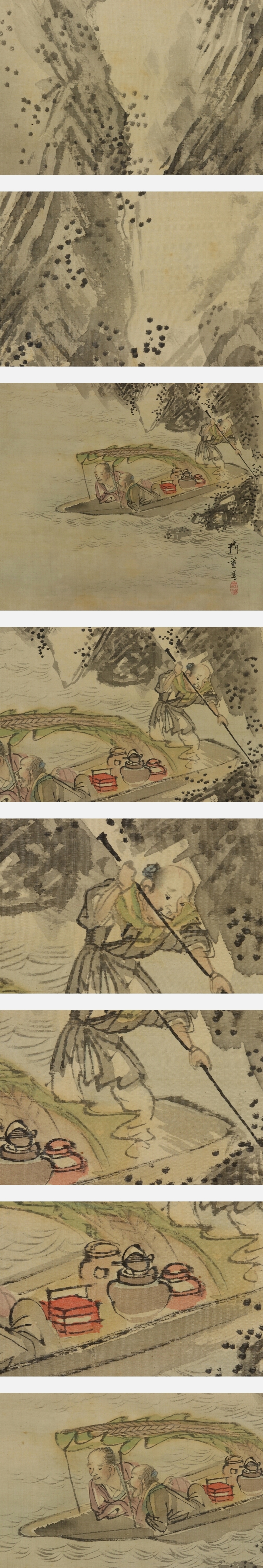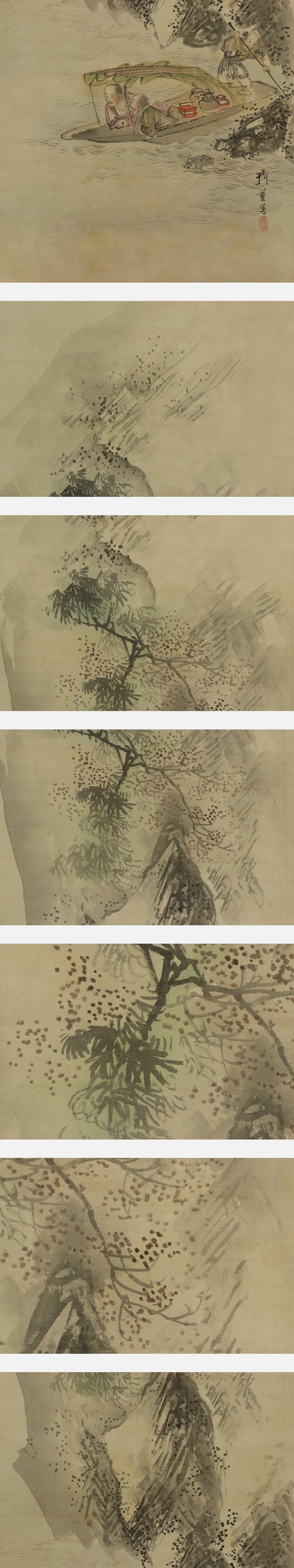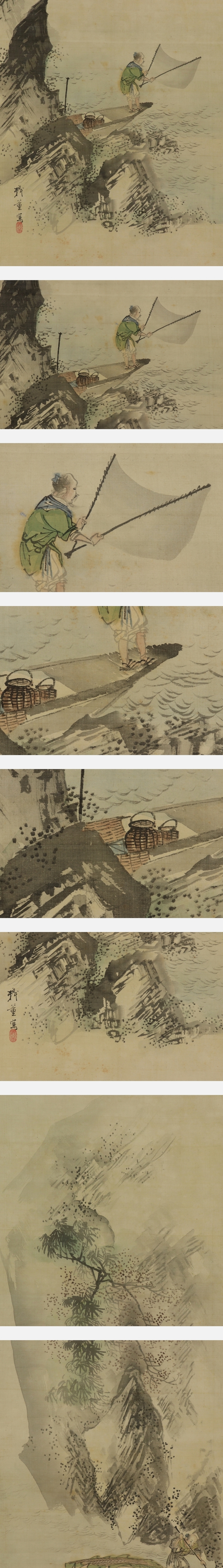 - 【真作】柴田義董【双幅・漁楽山水図】◆絹本◆合箱◆掛軸 u03105