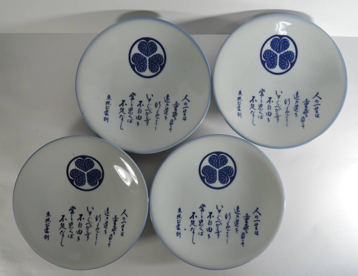 - ☆08H■三つ葉葵 東照公遺訓「人の人生は 重荷を負って・・・」 プレート/皿 4枚■徳川家康