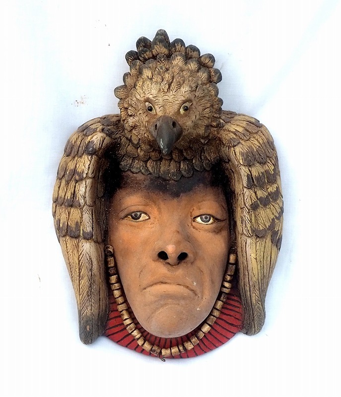 - 戦士像 お面 陶器製 中古品 壁掛け