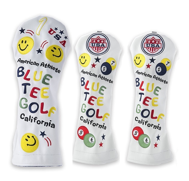 > △オークション♪【3PB-ホワイト】ブルーティーゴルフ 【スマイル&ピンボール】3本セット(B)ヘッドカバー 送料無料