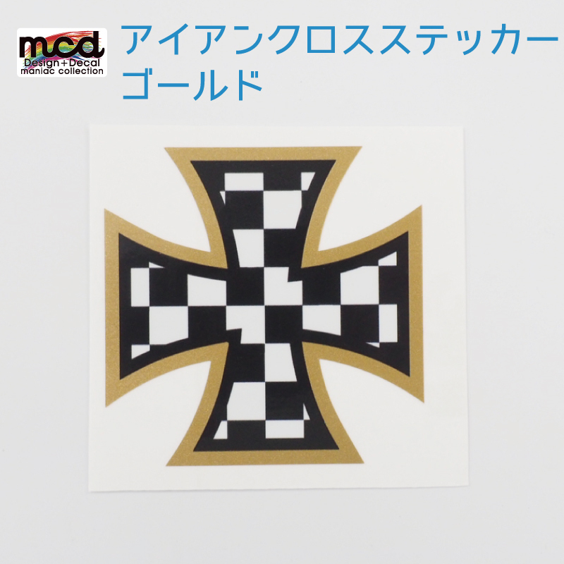 > ワンポイントステッカー アイアンクロス ドイツ シール 十字架タイプ チェッカーブラック 金フチ ワンポイント 十字架 メタリック