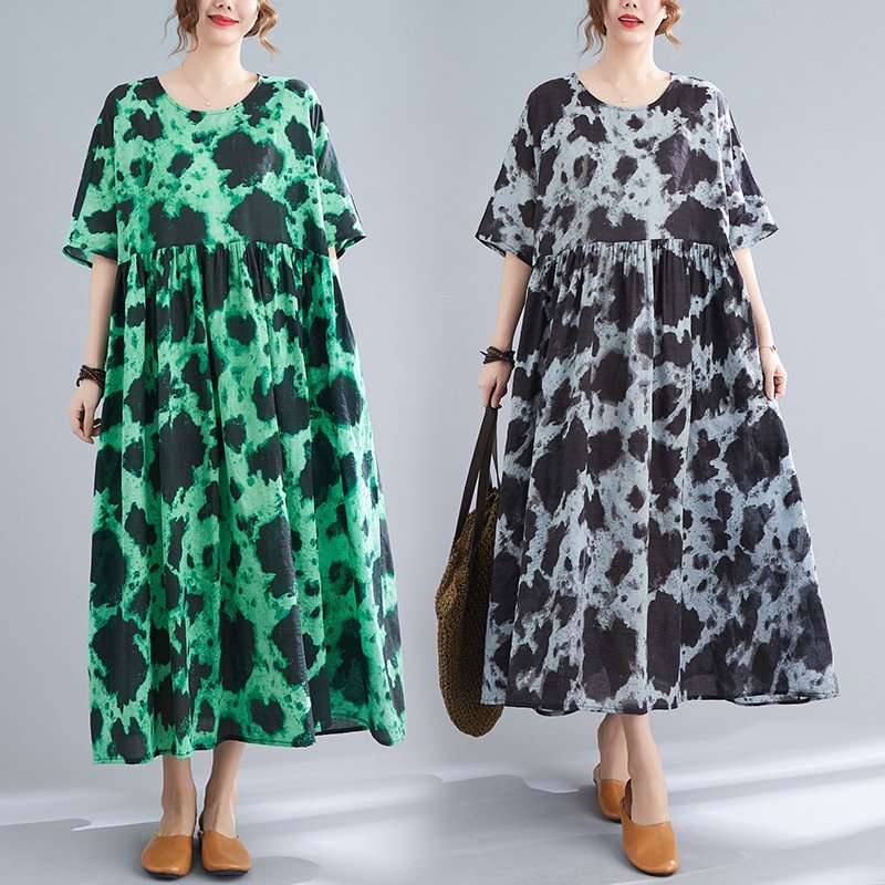- ZJM1151 体型カバー*配色**プリント半袖マキシロングワンピース* 新品夏*レディース*カジュアル*ゆったり大きいサイズ