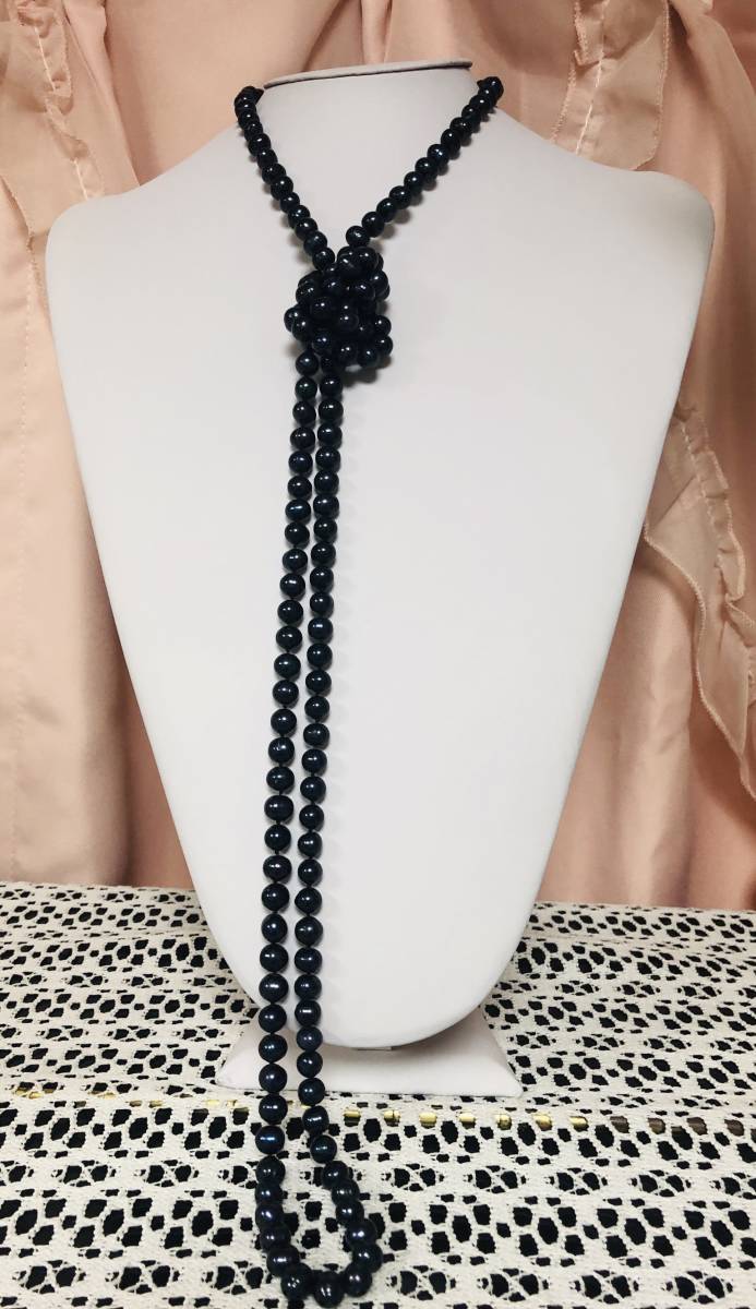 - 【日本製】 セール贅沢な大粒天然無核本真珠/超ロングブラックパールネックレス 132b♪6月誕生石♪