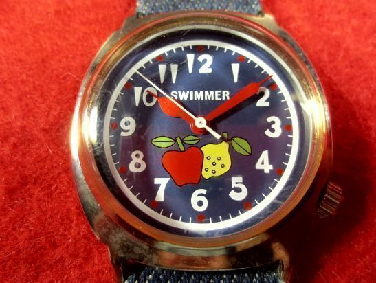 EC65E) ■完動腕時計★SWIMMER スイマー★カジュアル 可愛い★リンゴ レモン 文字盤もくっきり可愛いフォルムでお子様にも拍卖