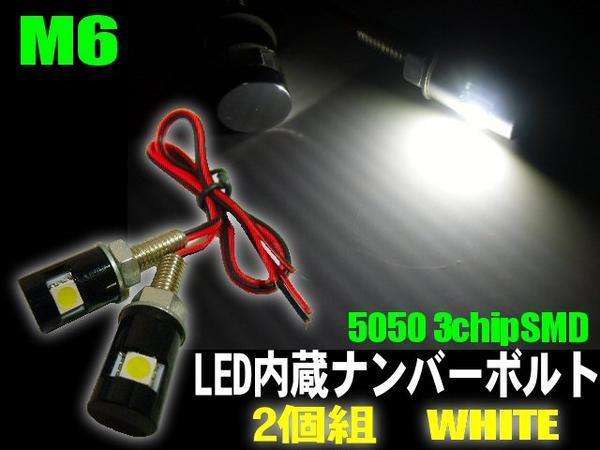 > メール便可 バイク LED 内蔵ボルト 2個組 黒/ブラック ナンバー灯 白/ホワイト フェンダーレス モンキー E
