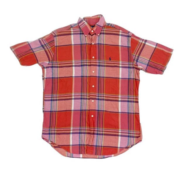 - 90's ラルフローレン Polo Ralph Lauren BLAKE コットンシャツ 半袖 ボタンダウン チェック サイズM [ta-0478]