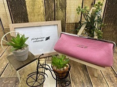 - 【姫路レザー】がま口(大) ピンク 小物入れ ペンケース メガネ入れ がま口 革 本革 カスタマイズOK商品