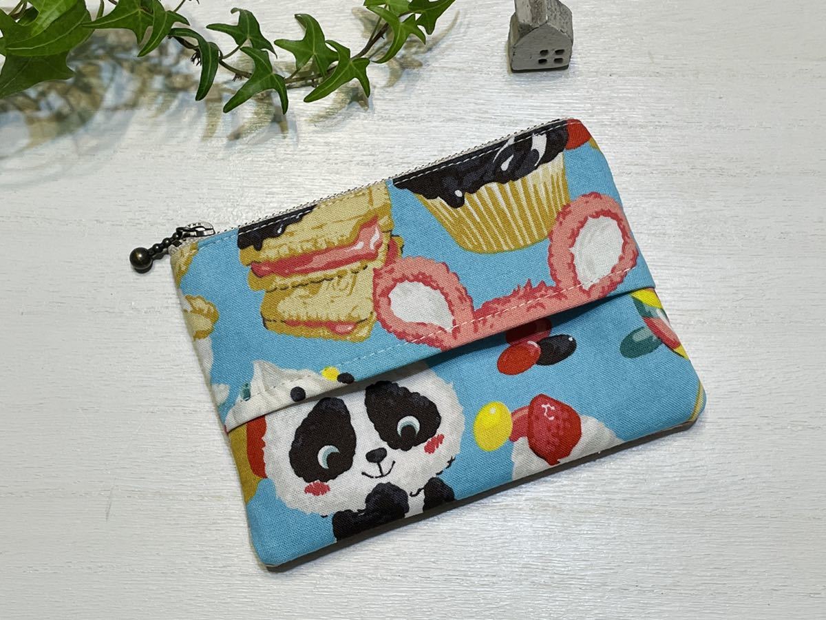 - ハンドメイド*テッシュケース付きポーチ*パンダ*フラットポーチ☆9cm×12cm☆カードケース*コインケース*お薬入れなどに♪