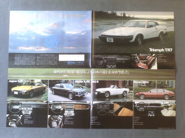 - 昭和レトロ【トライアンフTR7・ジャガーXJS・ローバー3500・MGB等パンフレット】日本レイランド/昭和52年(一枚物)
