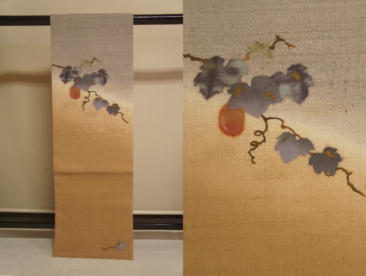 > 正絹紬灰汁ねず色丁子茶色ぼかし地染和紙ちぎり絵模様未着用名古屋帯[N14027]