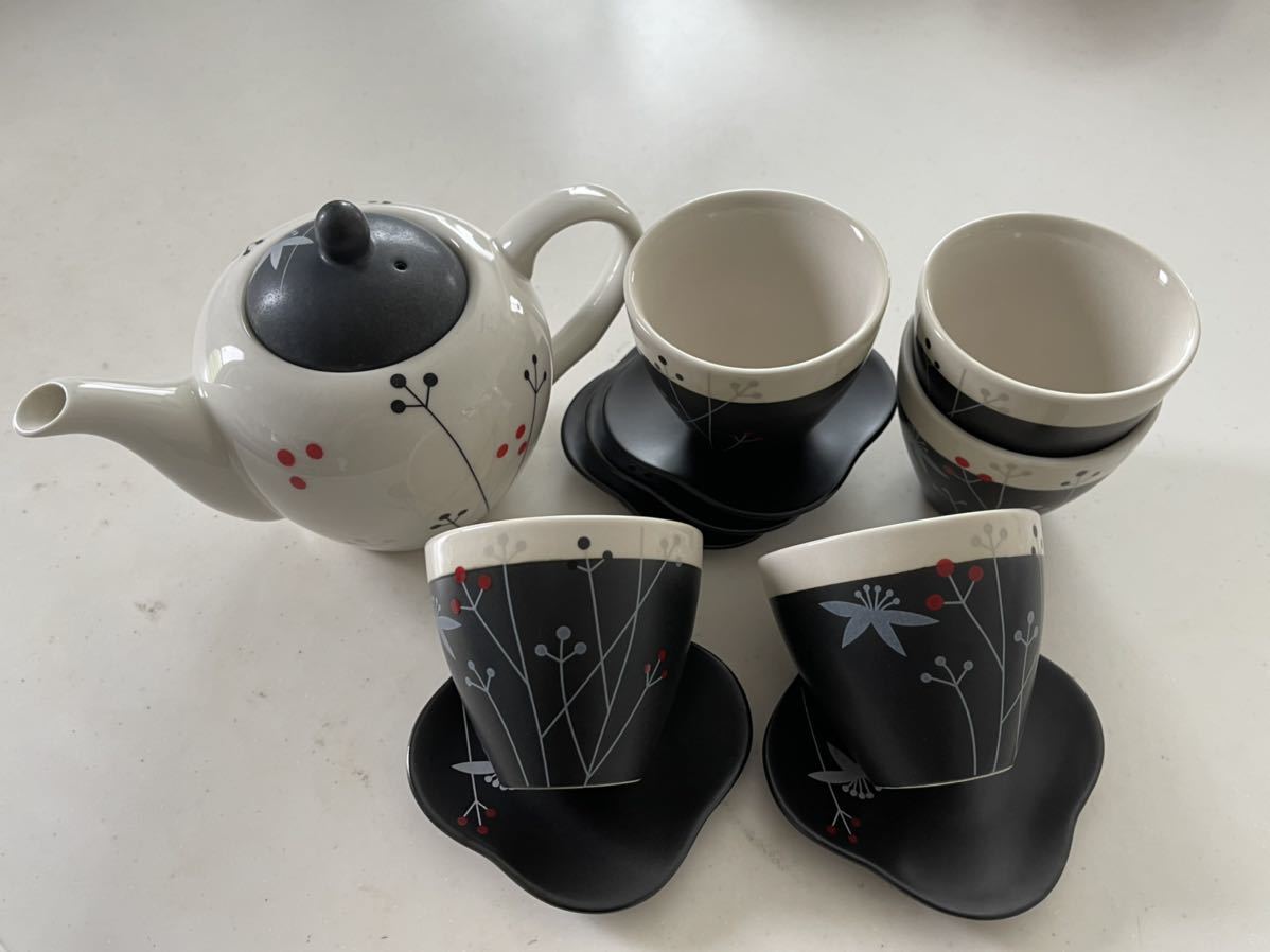 > 可愛い☆ティーカップセット☆シックな色合いで、コースターも陶器で可愛いですよ☆