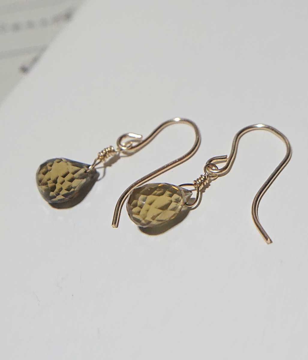 - しずく型のビアクォーツ&14KGFのピアス/14金GF/さりげなく華奢なデザイン/ドロップ、雫、滴