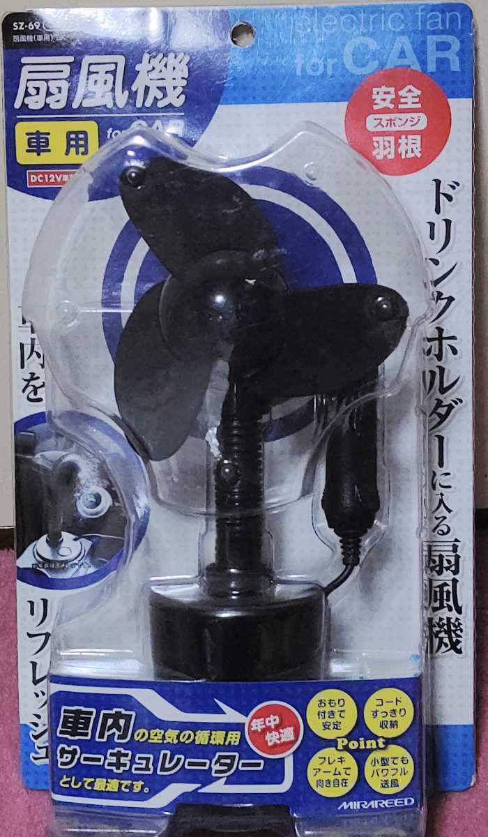 - ☆ミラリード車内空気冷気暖気循環カップホルダー用扇風機サーキュレーターSWはオンオフのみブラック色羽根は安心素材☆