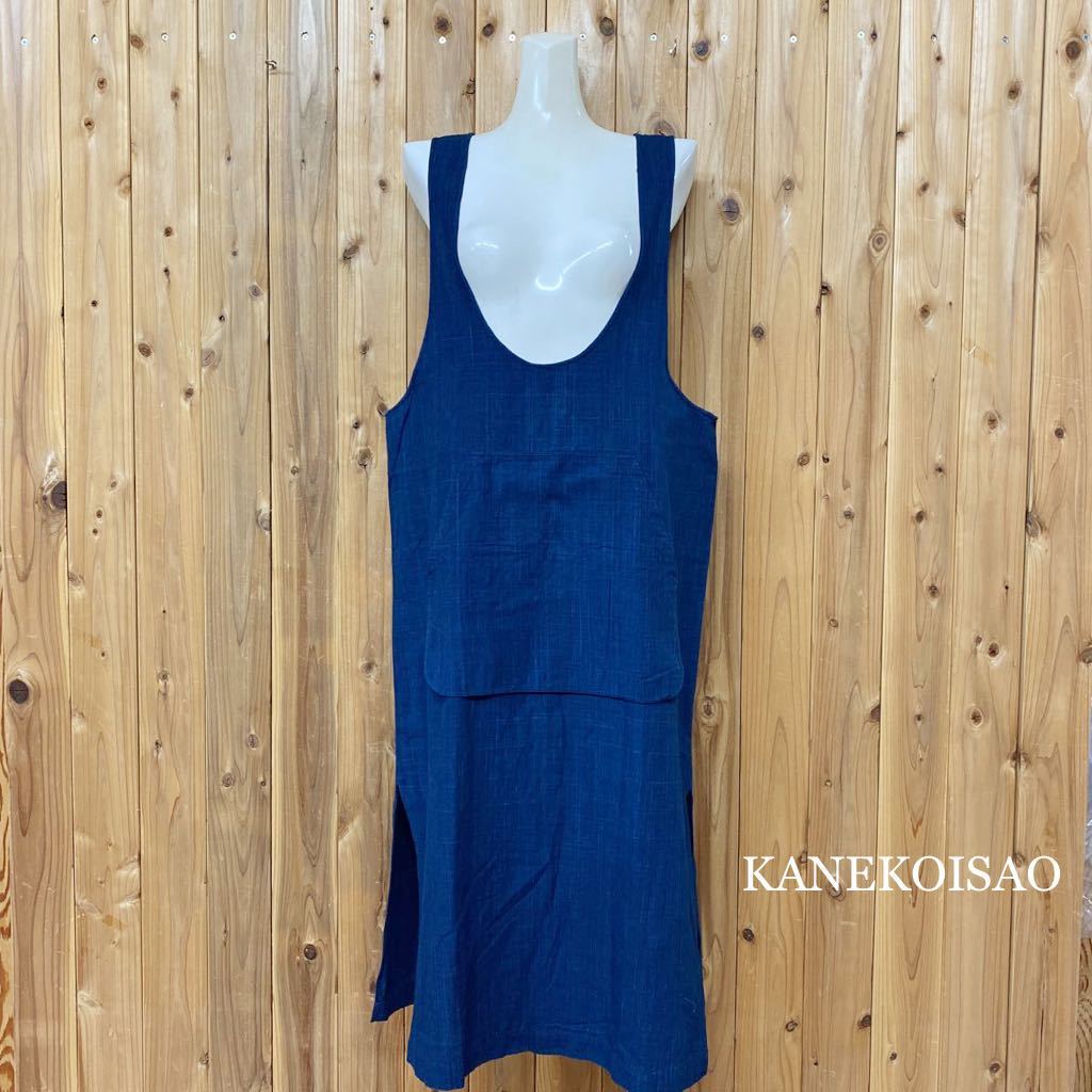 - KANEKOISAO * カネコイサオ ■ 深V ロングスカート エプロンスカート 前ポケット ネイビー ブルー ジャンパースカート