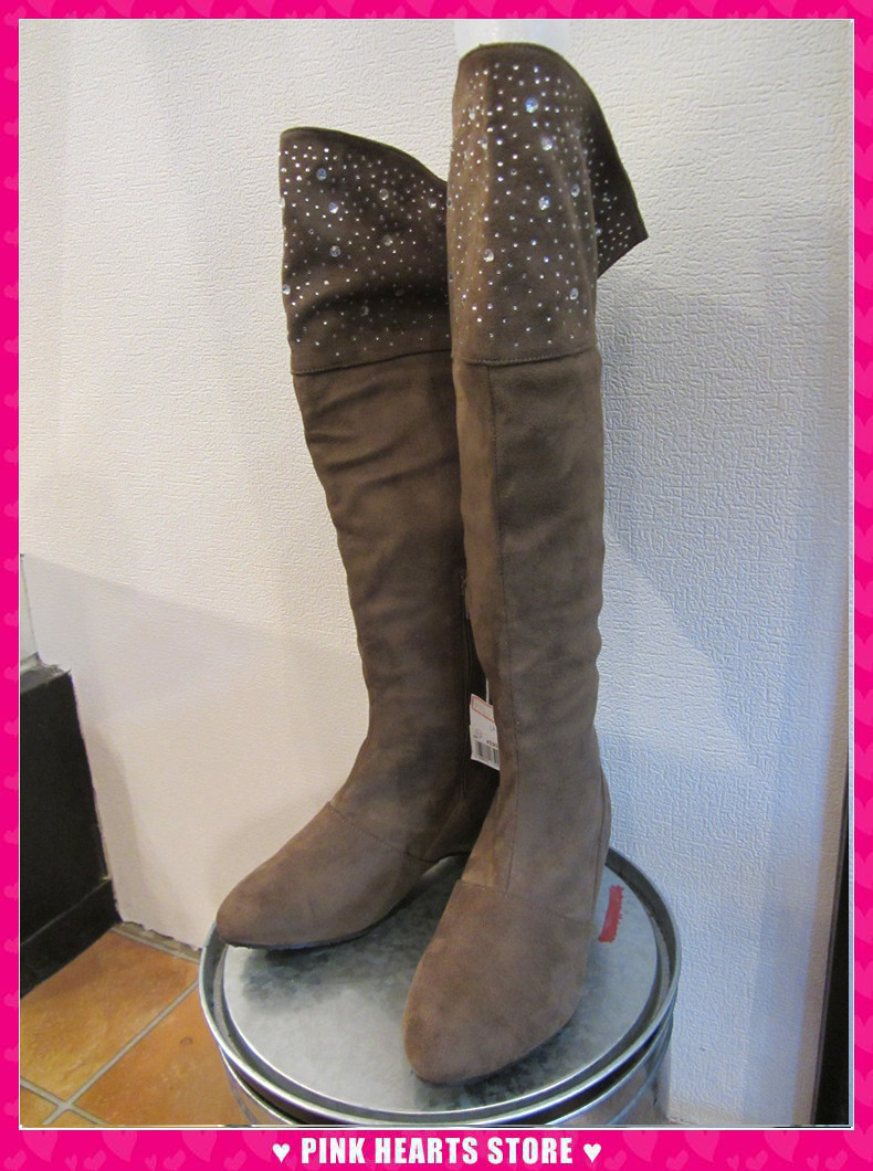 > 新品レディース靴◇2WAYニーハイブーツ ラインストーン付 モカ L(24cm) 68-175
