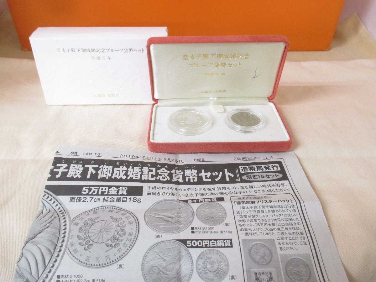 - 本物保証【即決で送料無料】未使用/記念硬貨/平成5年/皇太子殿下御成婚記念プルーフ貨幣セット/5000円銀貨/500円白銅貨/日本/貨幣/正規品